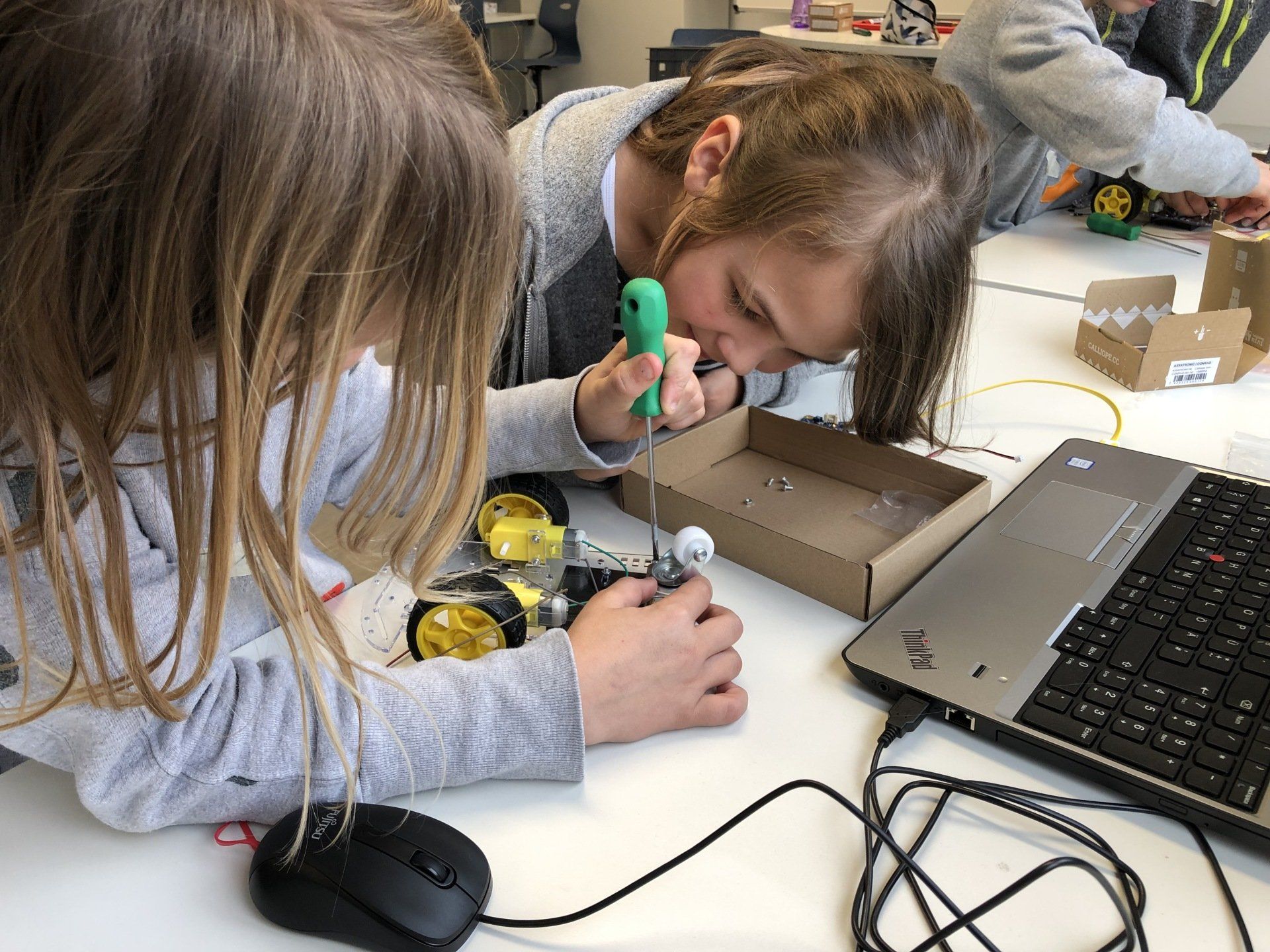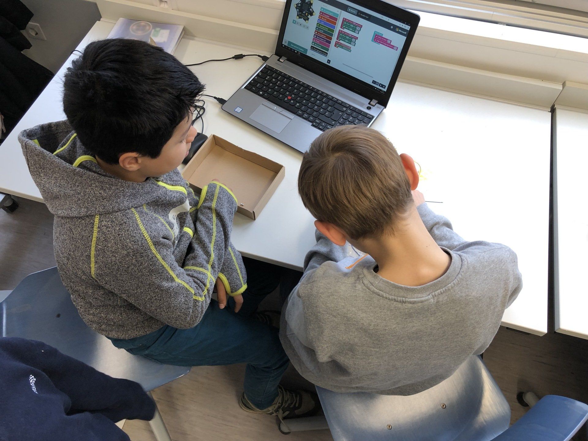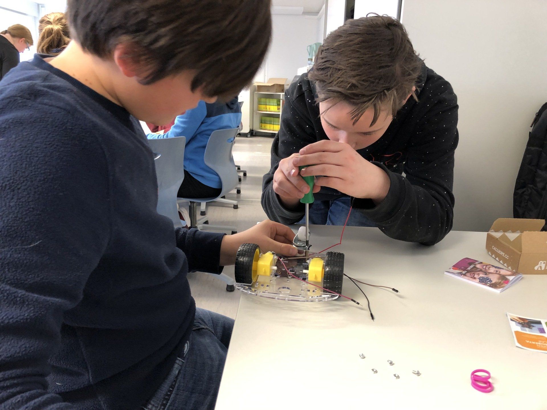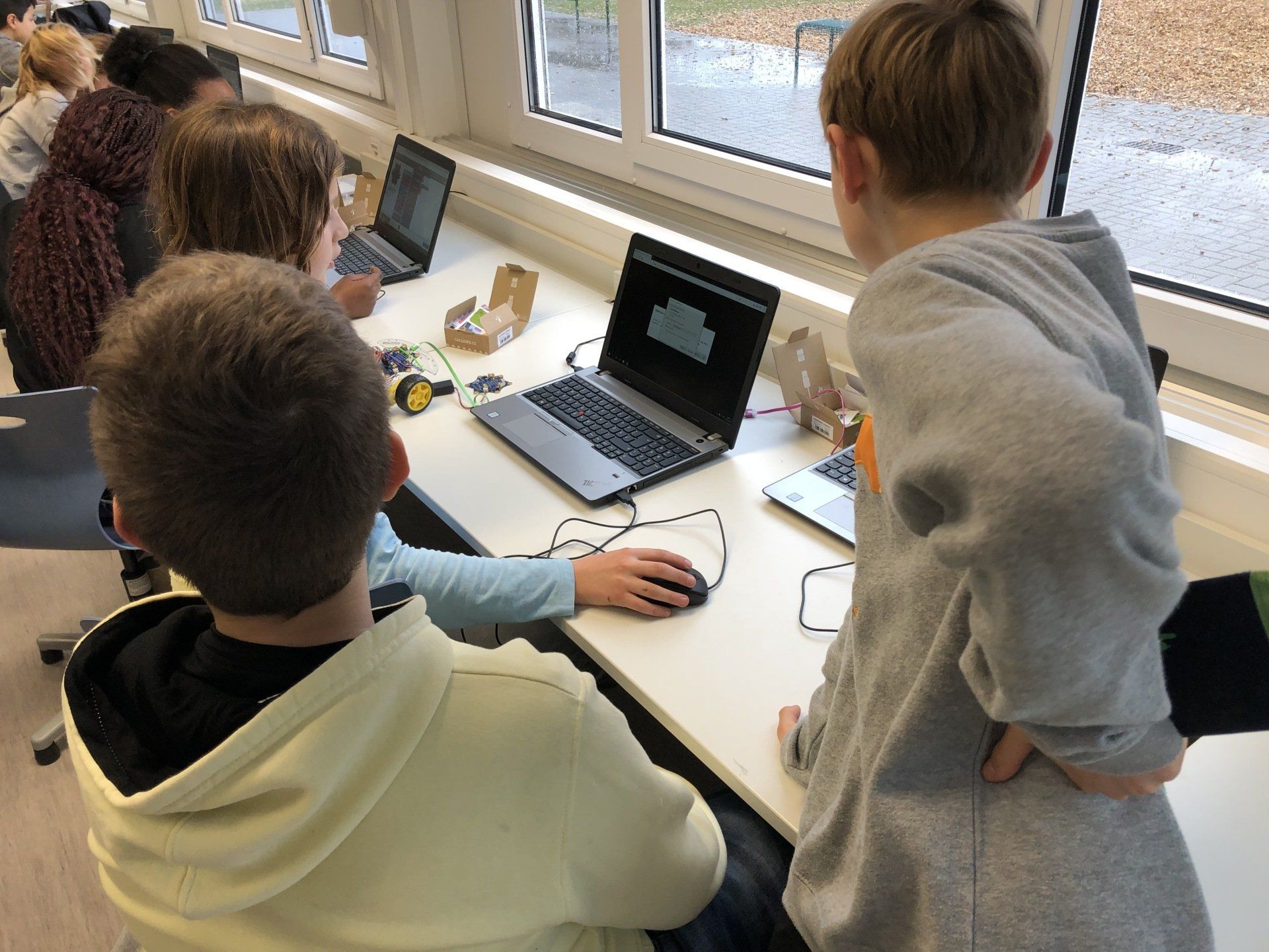 In Zusammenarbeit mit dem Amt für Schulentwicklung der Stadt Köln und der Initiative „Coding for tomorrow“ der Düsseldorfer Vodafone Stiftung veranstaltete die Gesamtschule Wasseramselweg am 14. März einen Projekttag zum Thema Programmieren. Die Schülerinnen und Schüler der Klasse 5.1.3. hatten den ganzen Tag unter Anleitung die Gelegenheit, einen Minicomputer in ihren Händen zu halten, ein Fahrzeugmodell zusammenzubauen und dazu das entsprechende Programm am Laptop zu schreiben.
