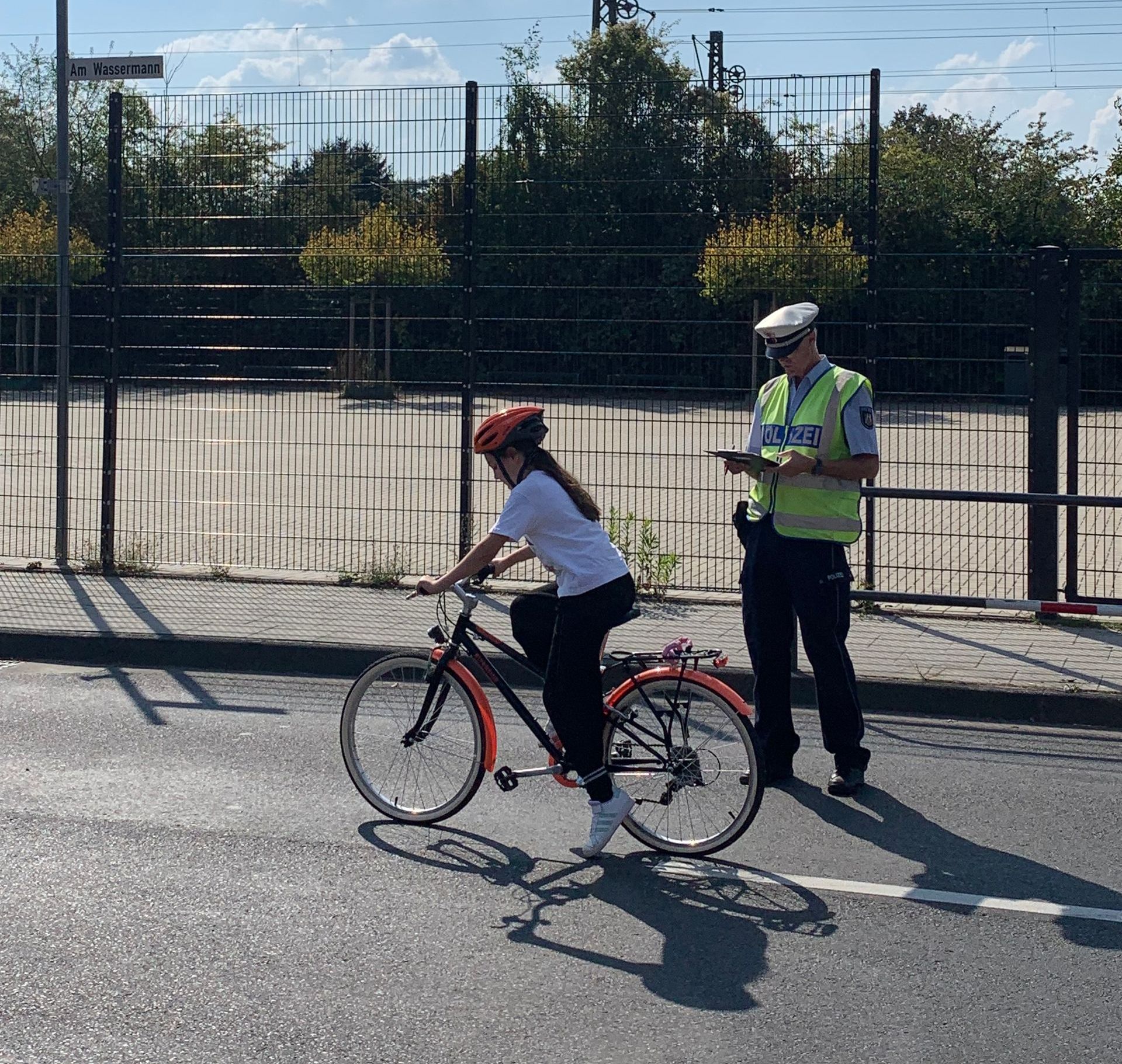 Alle in unserer Klasse waren aufgeregt, weil der Polizist an dem Tag kam. Unsere Fahrrad Prüfung hat am 19.09.2024 stattgefunden. Der Ablauf war folgender: Erstmal hatten wir zwei Stunden Unterricht zu den Regeln im Verkehr gemacht. Eine andere 5. Klasse hatte zu der Zeit ihr Fahrradtraining und wir ein bisschen später. Danach ist in der vierten Stunde der Polizist gekommen. Er hat uns erstmal begrüßt und dann haben wir die theoretische Prüfung gemacht. Nach der theoretischen Prüfung sind wir alle runtergegangen und haben vor der Schule gewartet. Dort haben sich die Lehrer besprochen und nachdem sie fertig waren, sollten wir unsere Fahrräder holen. Danach wurden wir in die Mitte gebracht und nacheinander mit unseren Namen aufgerufen. Wenn man aufgerufen wurde, bekam man eine Zahl auf dem Helm. Dann ging es los und wir sind eine Runde in der Nähe der Schule im Straßenverkehr gefahren.