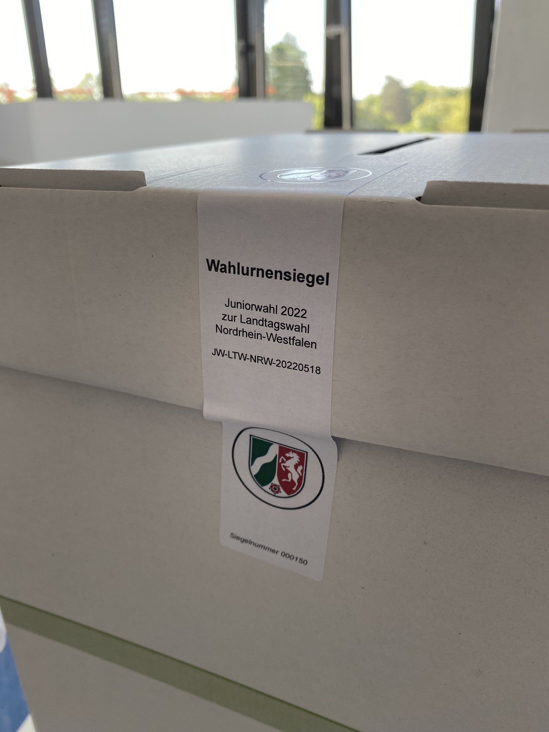 Anlässlich der Landtagswahlen 2022 in Nordrhein-Westfalen fand am 11. Mai im Rahmen des Gesellschaftslehre-Unterrichtes die Juniorwahl 2022 statt. Von 320 wahlberechtigten Schüler*innen nahmen 185 ihr Stimmrecht wahr. Das entspricht einer Wahlbeteiligung von 57,81%.