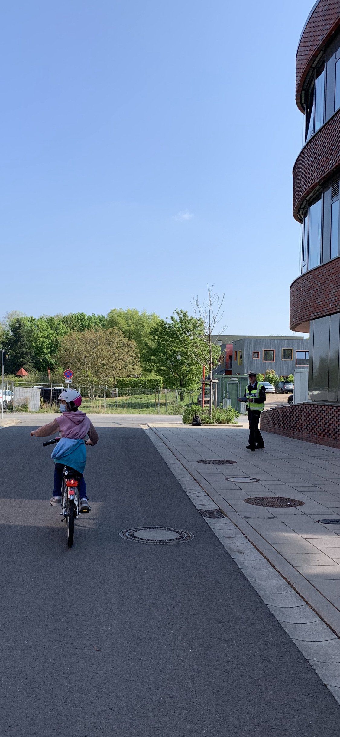 An insgesamt drei Tagen fand das Fahrradtraining der fünften Klassen statt. Das Training soll die Schüler*innen sicherer auf dem Fahrrad machen und gleichzeitig wurde das Gelände um die Schule herum erkundet. Die Schüler*innen der sechs Klassen brachten ihre Fahrräder mit und wurden von dem Polizisten Herrn Ruppert an den Tagen begleitet.