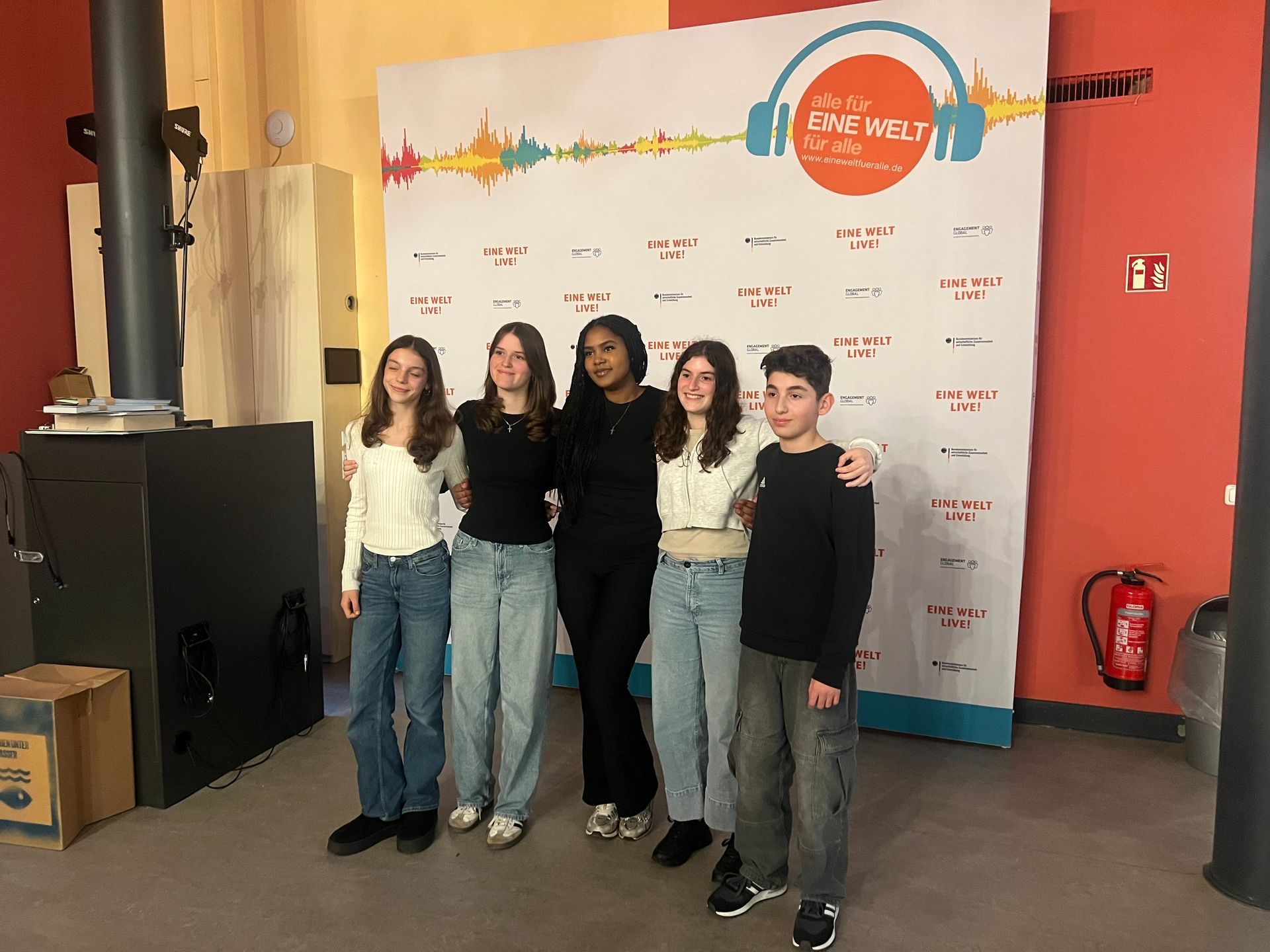 Schulband The Dippers – unter Top 15 beim bundesweiten Songwettbewerb „Dein Song für eine Welt“ Wenn im Frühjahr das Album zum 6. Songwettbewerbs „Dein Song für eine Welt“ erscheint, wird der Song „Tick Tack“ der Dippers zusammen mit 14 weiteren Titeln von Bands aus ganz Deutschland auf CD und auf Spotify zu hören sein. Alle Bands hatten im Vorfeld Text und Musik zu dem 17 UN-Zielen für Nachhaltigkeit geschrieben und der Song der Dippers hat es aus mehr als 800 Einsendungen heraus auf die Compilation geschafft. Für die Preisverleihung reiste die Band für 4 Tage nach Berlin und wurde Teil einer großen Veranstaltung mit Coachings und Final-Konzert. Im März geht es ein zweites Mal nach Berlin und der Song wird dort in den KMA-Studios noch einmal vor der endgültigen Veröffentlichung neu produziert und aufpoliert. Wir gratulieren und sind sehr gespannt! https://www.eineweltsong.de/