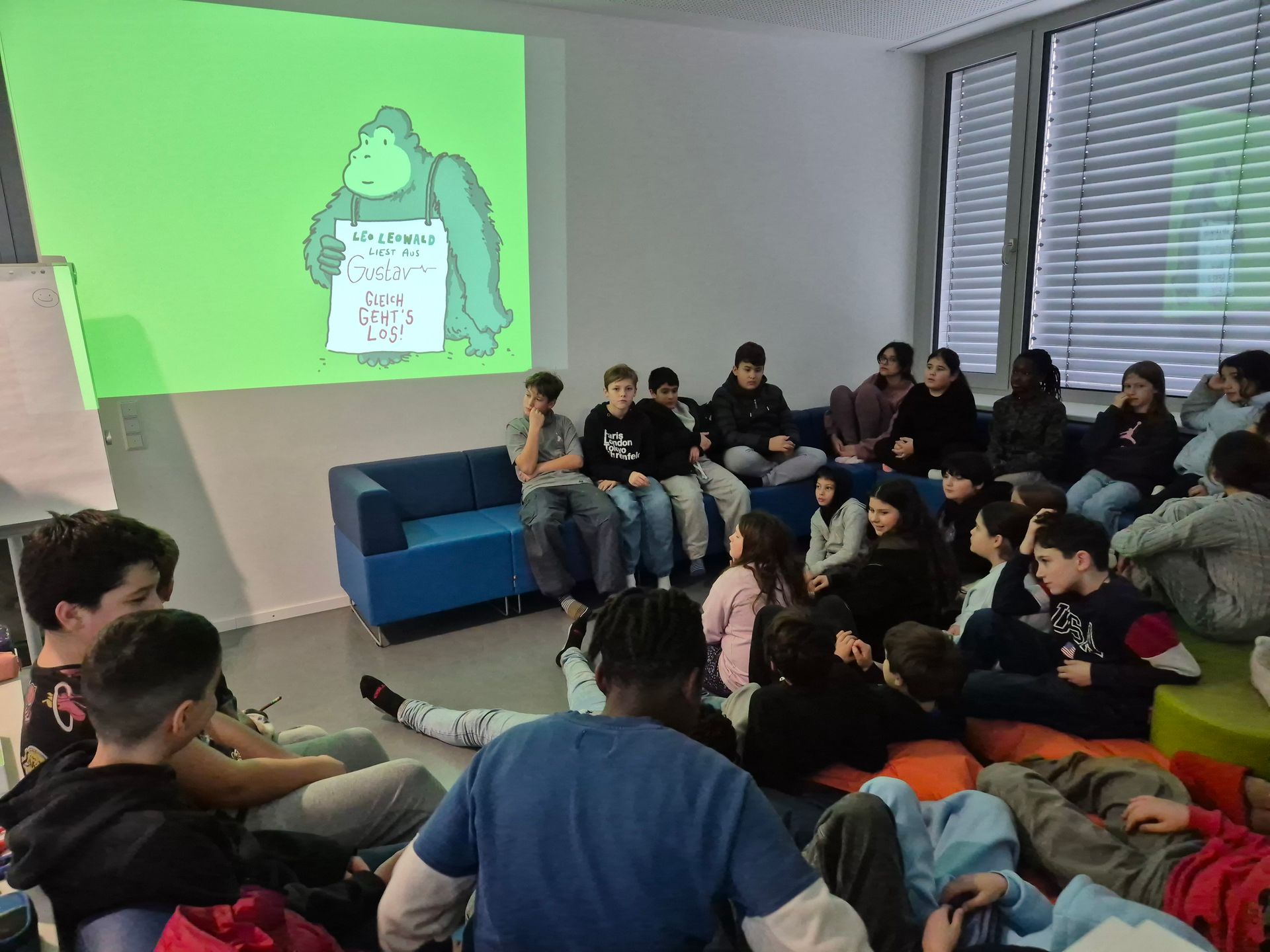 Leo Leowald ist Comiczeichner und Illustrator und wohnt in Köln. Aber was ist eigentlich ein Illustrator? Wie entwickelt man Comicfiguren und woher nimmt man immer diese Ideen? Davon erzählt Leo und liest die Geschichte „Gustav und der Professor“, die Haimo Kinzler getextet und Leo gezeichnet hat. Darin landet der schnabelige Gustav auf dem Weg zur Schule versehentlich in einem Geheimlabor und muss gegen eine Roboterbande antreten. Außerdem liest Leo einige seiner Comicstrips um den Helden Sturmi, die regelmäßig im Comicmagazin POLLE erscheinen, und verrät, was an den Geschichten wahr ist und was er einfach mal frech dazuerfunden hat. Die Kinder des 5. Jahrgangs hörten begeistert zu und zeichneten sogar unter seiner Anleitung ihren eigenen Comic-Charakter. Frei nach dem Motto: jeden Tag ein bisschen zeichnen üben und dann kann man es plötzlich supergut :-)